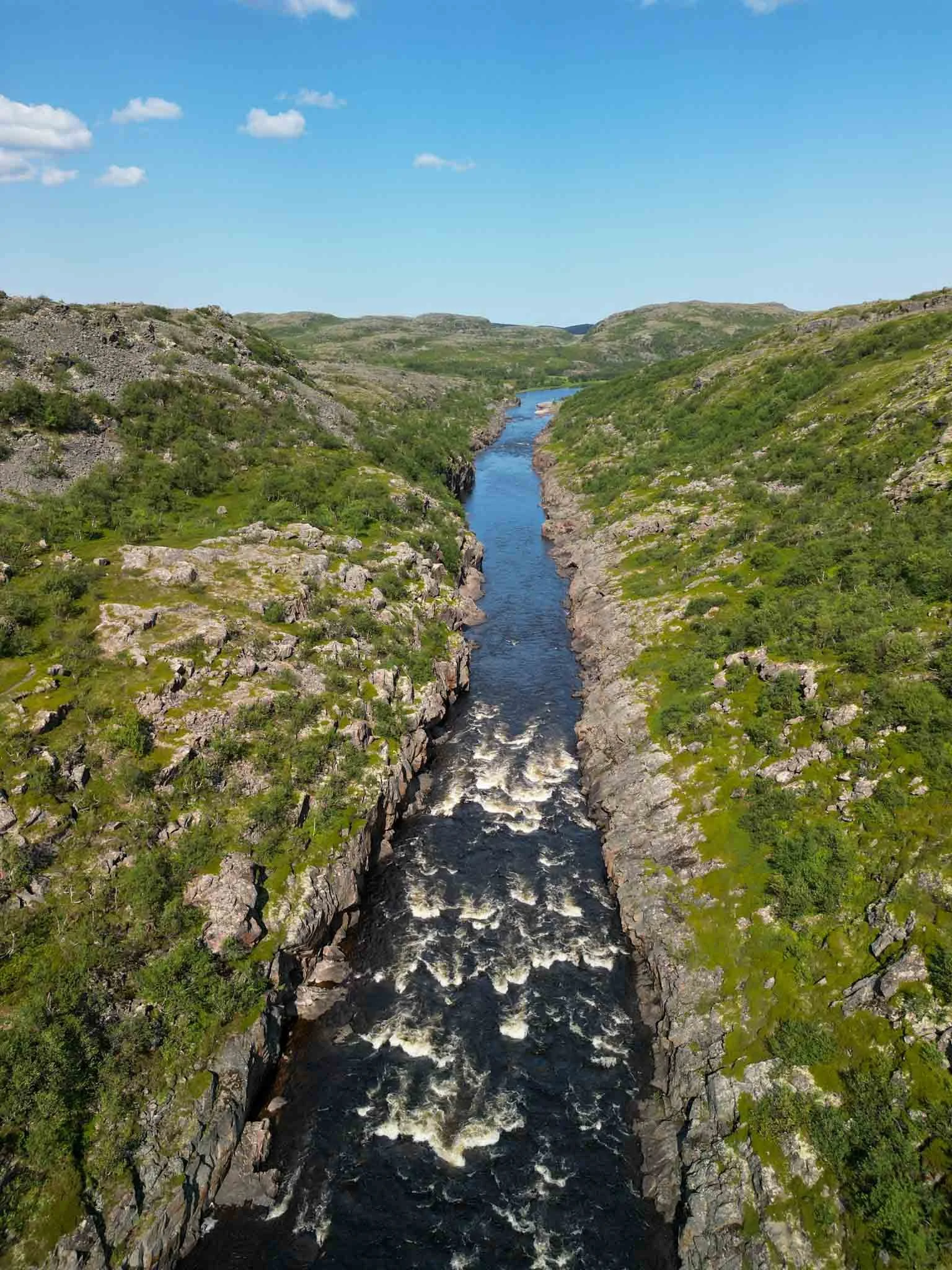 The hot weather arrived on the Kola Peninsula very rapidly. The daytime temperature in the sun reached +30°C. On the first day, Arkady distinguished himself by catching a 15.5 lb (7.5 kg) male salmon in the lower reaches of the Kharlovka at the Island pool.