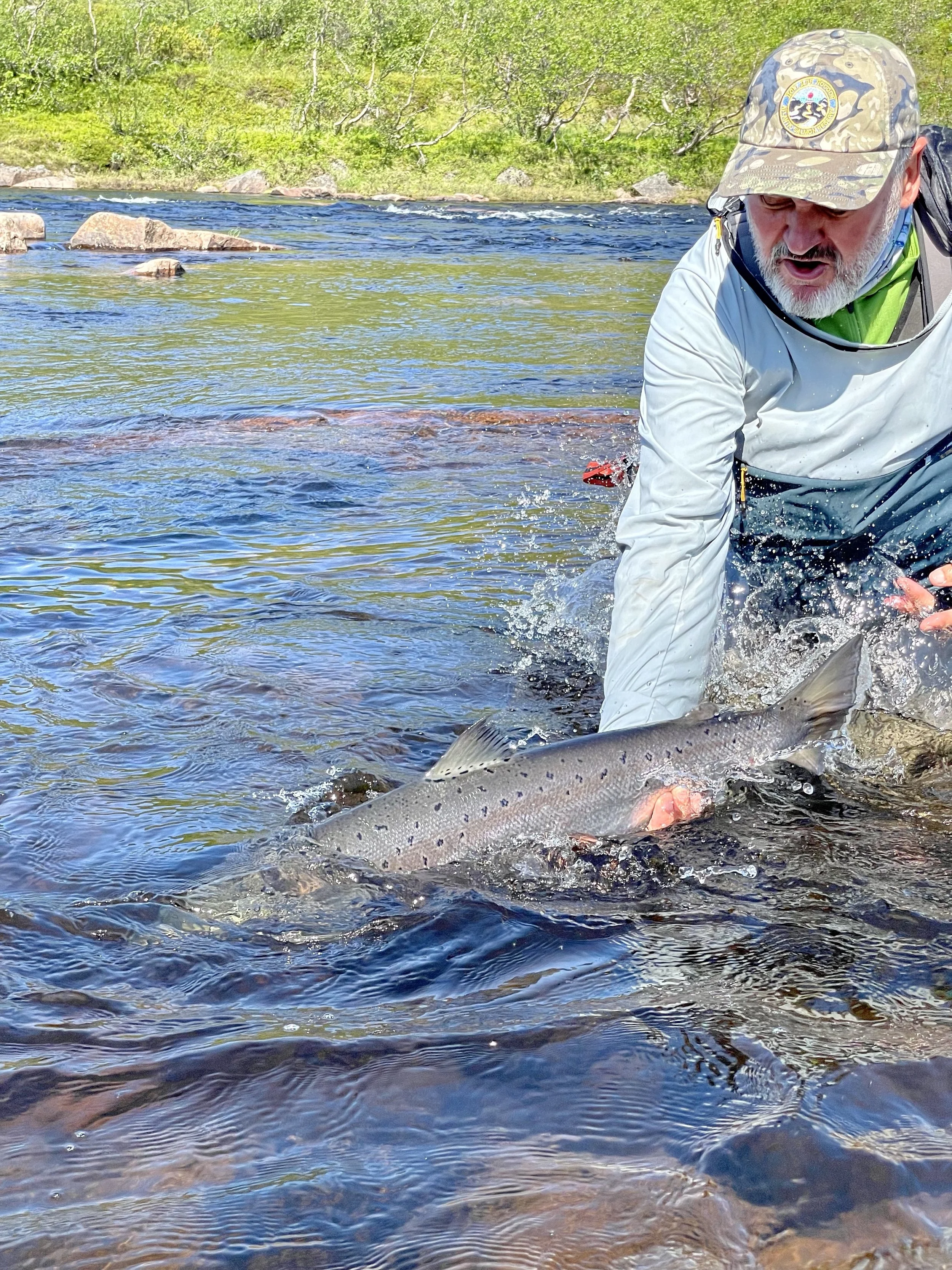 One of the days at Zolotaya was especially remarkable. The very first pool, Peter’s pool, Vadim managed to land a wonderful 30-pounder which became his Personal Best salmon. After a few photos the fish was safely released.