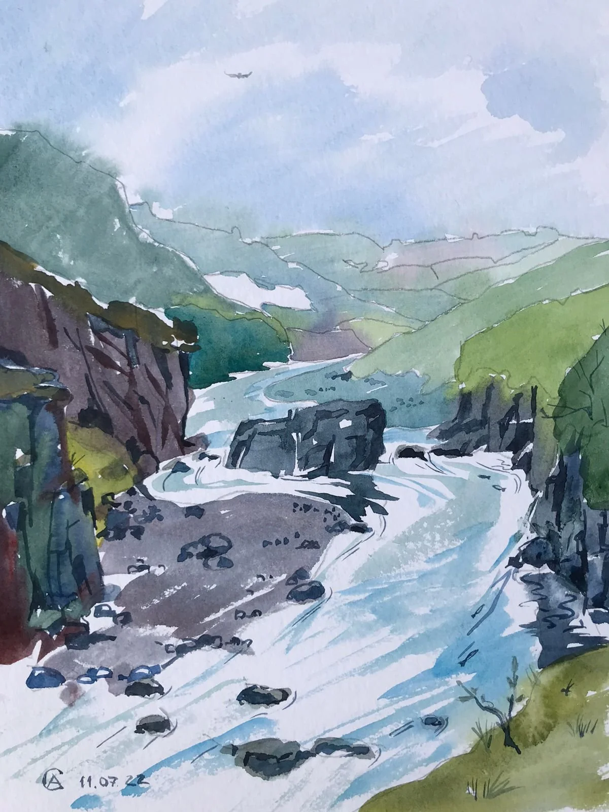 Наш коллега Андрей впервые побывал в АСР! В дополнение к отличным 9 лососям, пойманным на неделе, Андрей нашел время посидеть на берегу с кистью и создать серию завораживающих акварельных работ с изображением его любимых пулов.